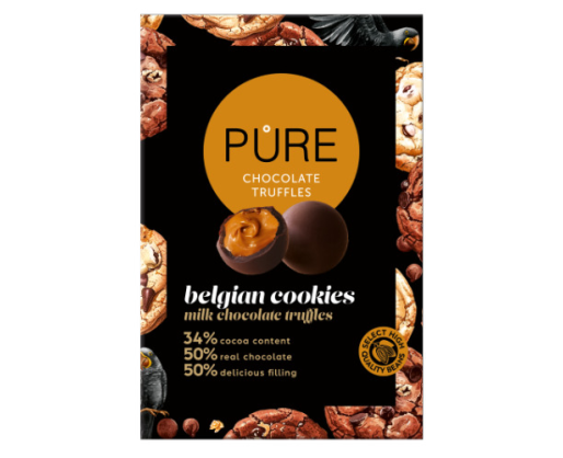- Pieninio šokolado triufeliai PURE su belgiško biskvitinio kremo įdaru, 148g