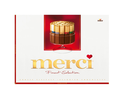 MERCI saldainiai. Įvairių skonių šokoladinių saldainių rinkinys. Kiekvienas saldainis įpakuotas atskirai. 250 g.