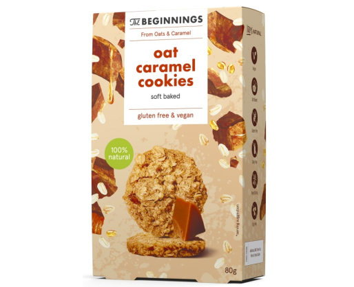 Avižiniai sausainiai THE BEGINNINGS, su karamele, 80 g