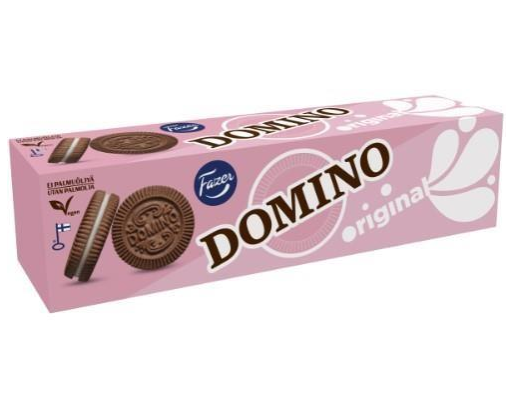 - Kakaviniai sausainiai DOMINO, su vanilės skonio įdaru 175g