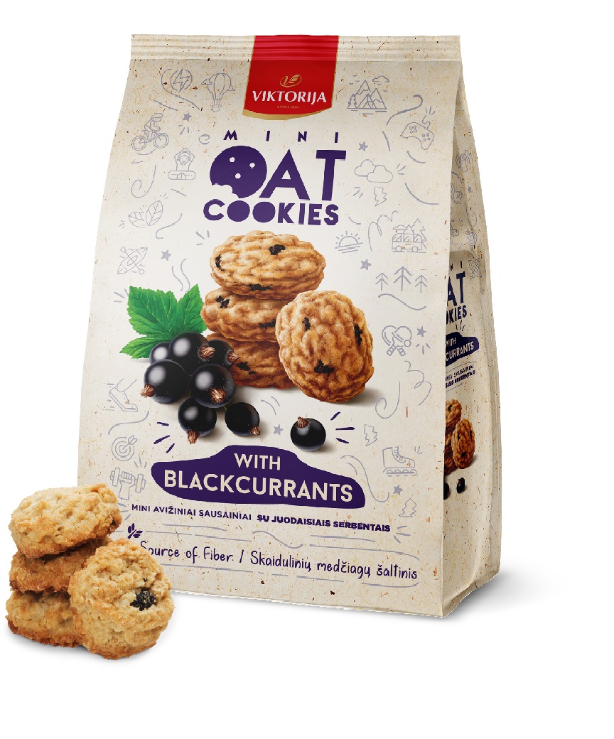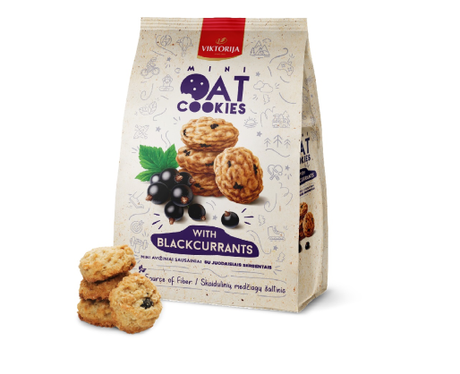 - Sausainiai avižiniai, mini su juodaisiais serbentais, 250g