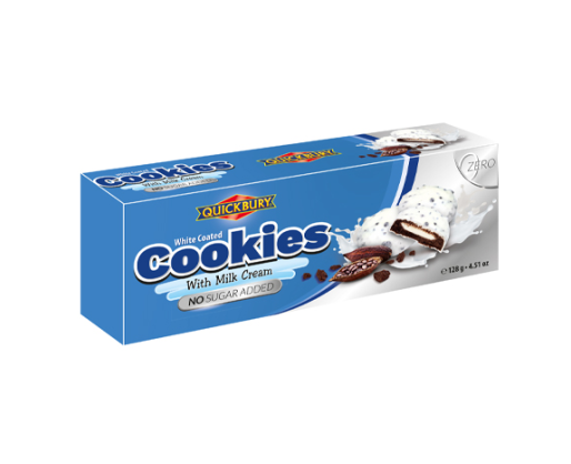 - Sausainiai balto šokolado apvalkale su pieno įdaru, be pridėtinio cukraus, 128g