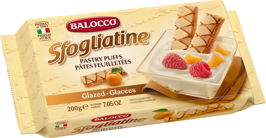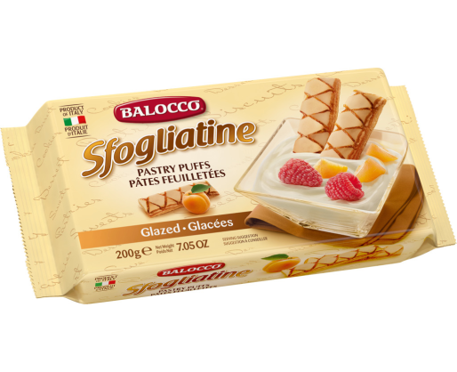 - Sluoksniuotos tešlos sausainiai, glazūruoti BALOCCO, Sfogliatine Glassate, 200 g