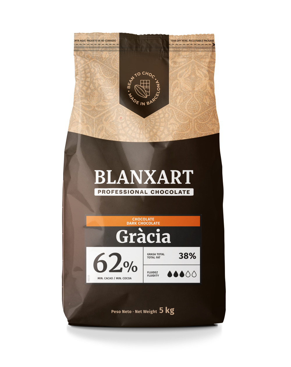 Juodas šokoladas BLANXART, Gracia 62 %, 5 kg