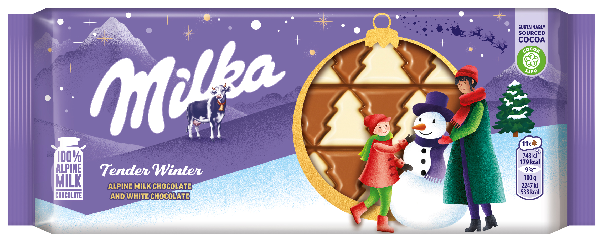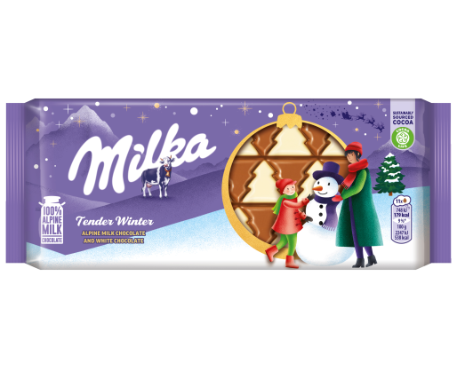 - Pieninis šokoladas MILKA, iš Alpiu pieno, su baltuoju šokoladu, 90 g