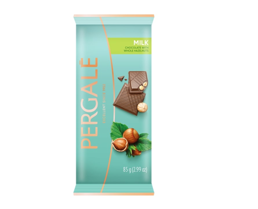 - Pieniškas šokoladas PERGALĖ, su lazdyno riešutais 85g