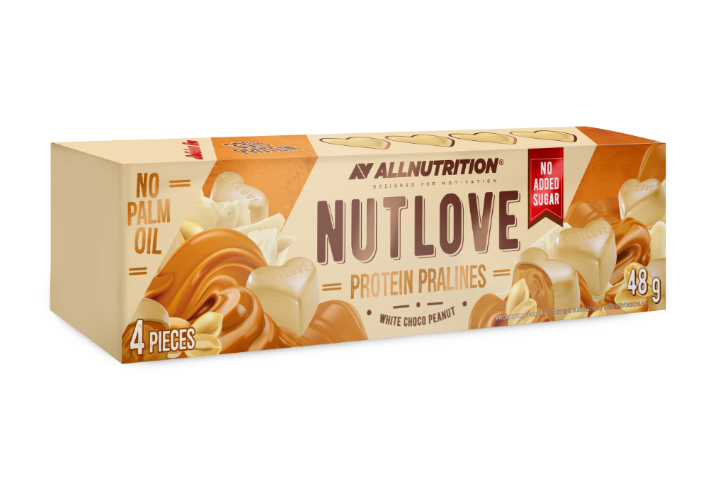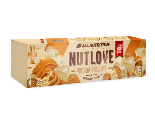 - Proteininiai baltojo šokolado saldainiai NUTLOVE ALLNUTRITION su riešutų įdaru, 48g