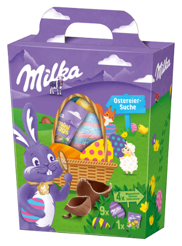 - Šokaladinių saldainių rinkinys MILKA Egg Hunt Basket, 162 g