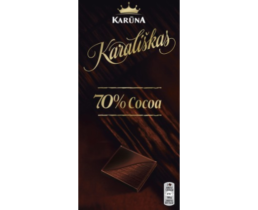 KARŪNA šokoladas Juodasis "Karališkas" šokoladas su 70% kakavos. 100 g. Su riešutaisPrekės parametrai