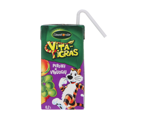 - Sulčių gėrimas, ELMENHORSTER Vita Tigras, Persikų - vynuogių, 200 ml