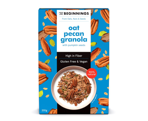 - Veganiška avižinė granola THE BEGINNINGS, su pekano riešutais, 200 g