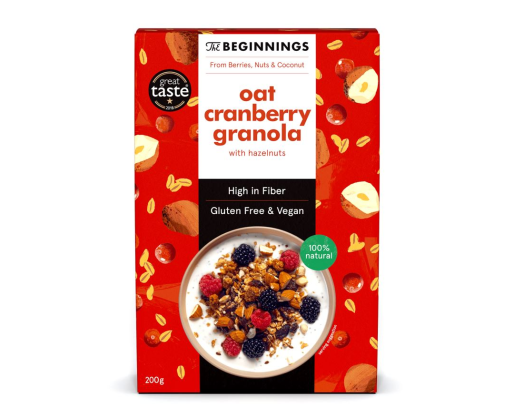 - Veganiška avižinė granola THE BEGINNINGS, su spanguolėmis, 200 g