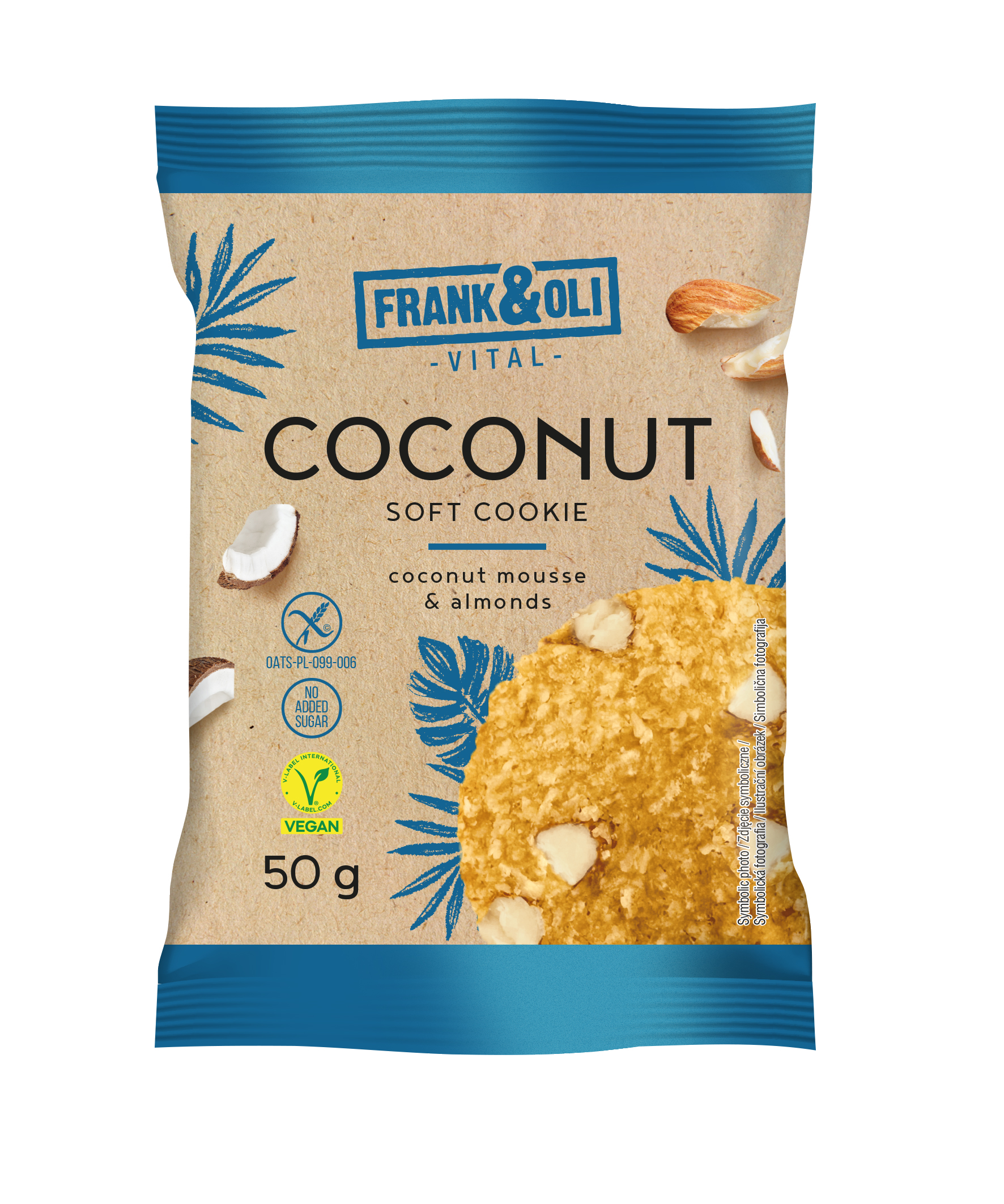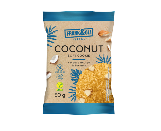 - Veganiškas minkštias kokosinis sausainis FRANK&OLI su migdolais ir avižiniais dribsniai...