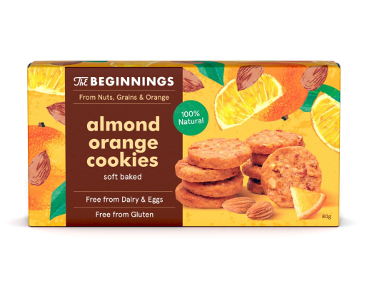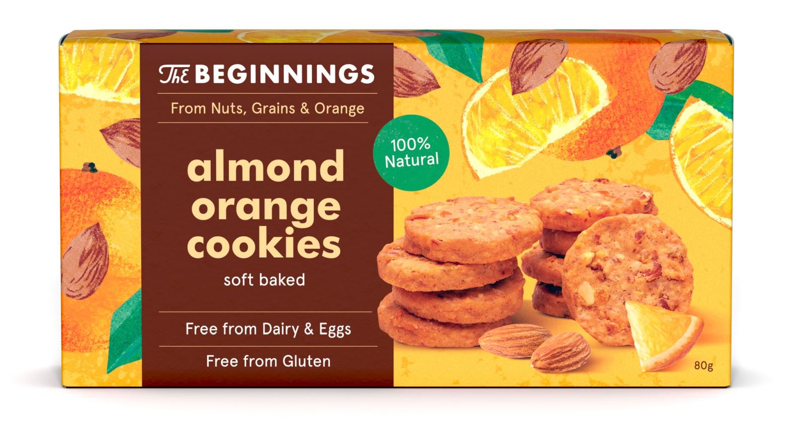 - Veganiški migdoliniai sausainiai THE BEGINNINGS, su apelsinais, 80 g