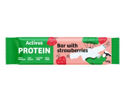 Baltyminis batonėlis ACTIVUS su braškėmis, 40g