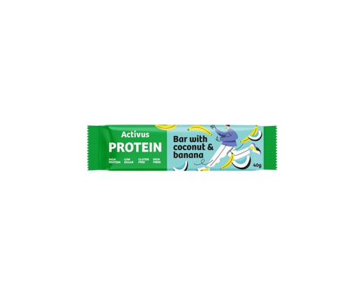 - Baltyminis batonėlis ACTIVUS su kokosų drožlėmis ir bananais, glaistytas šok., 40g