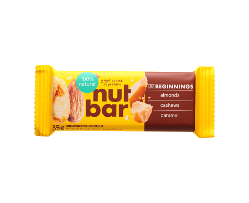- Batonėlis THE BEGINNINGS su riešutais ir karamele, 35 g