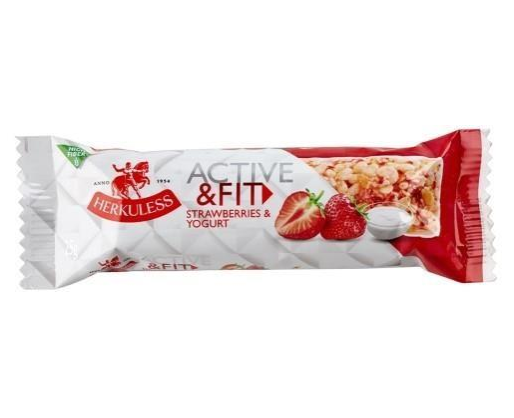 Javainių batonėlis HERKULESS Active&Fit, su braškėmis ir jogurtu, 25 g