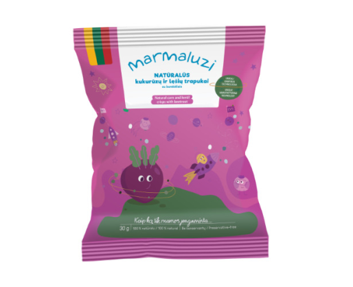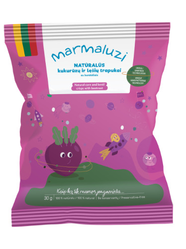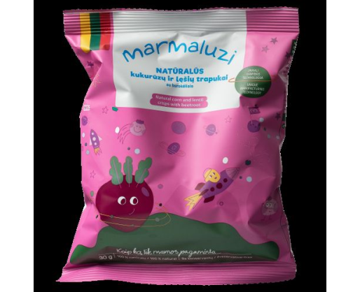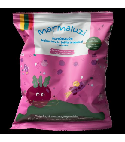 - Kukurūzų ir lešių trapukai MARMALUZI su burokėliais naturalūs, 30g