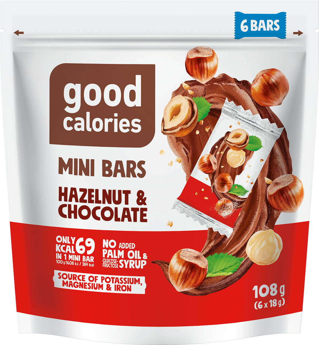 - Mini datulių batonėliai GOOD CALORIES, su riešutais ir šokoladu, 108 g