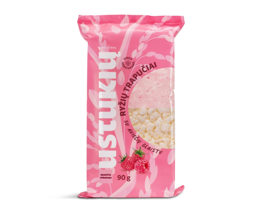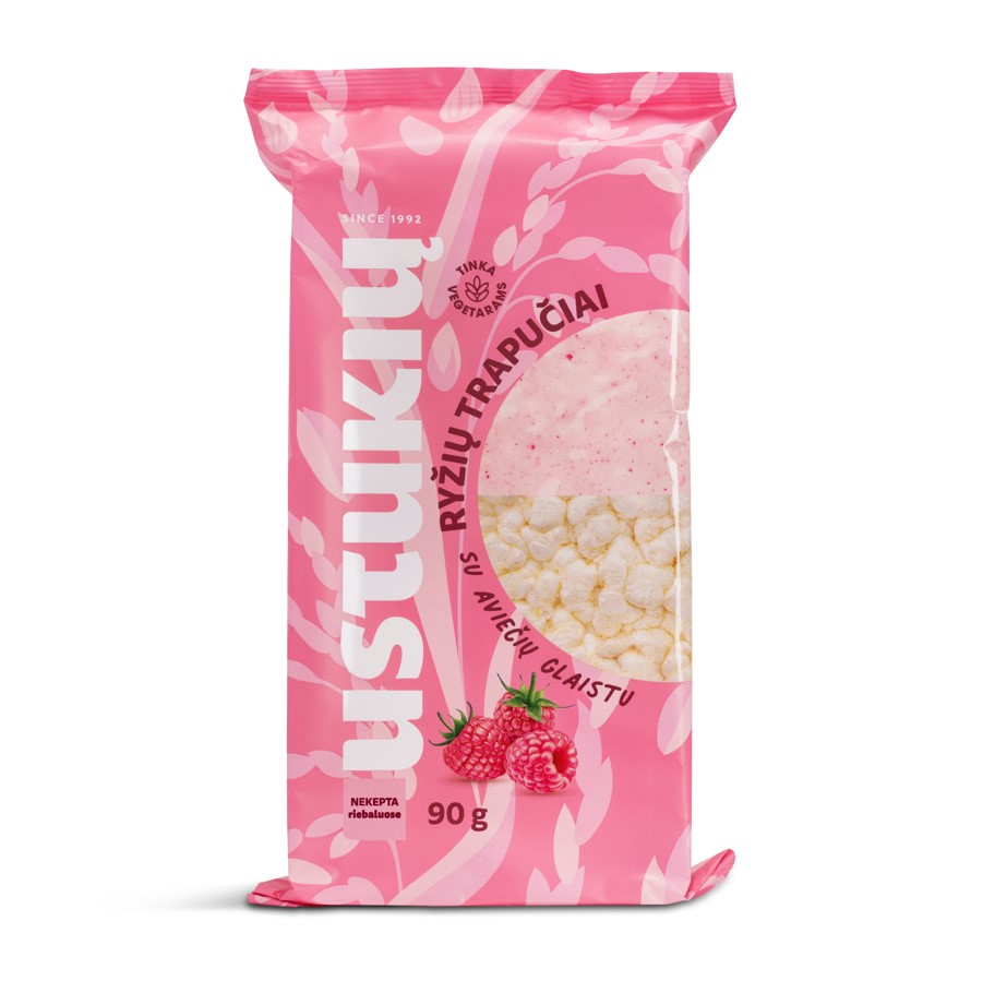 - Ryžių trapučiai USTUKIŲ MALŪNAS, su aviečių glaistu, 90 g