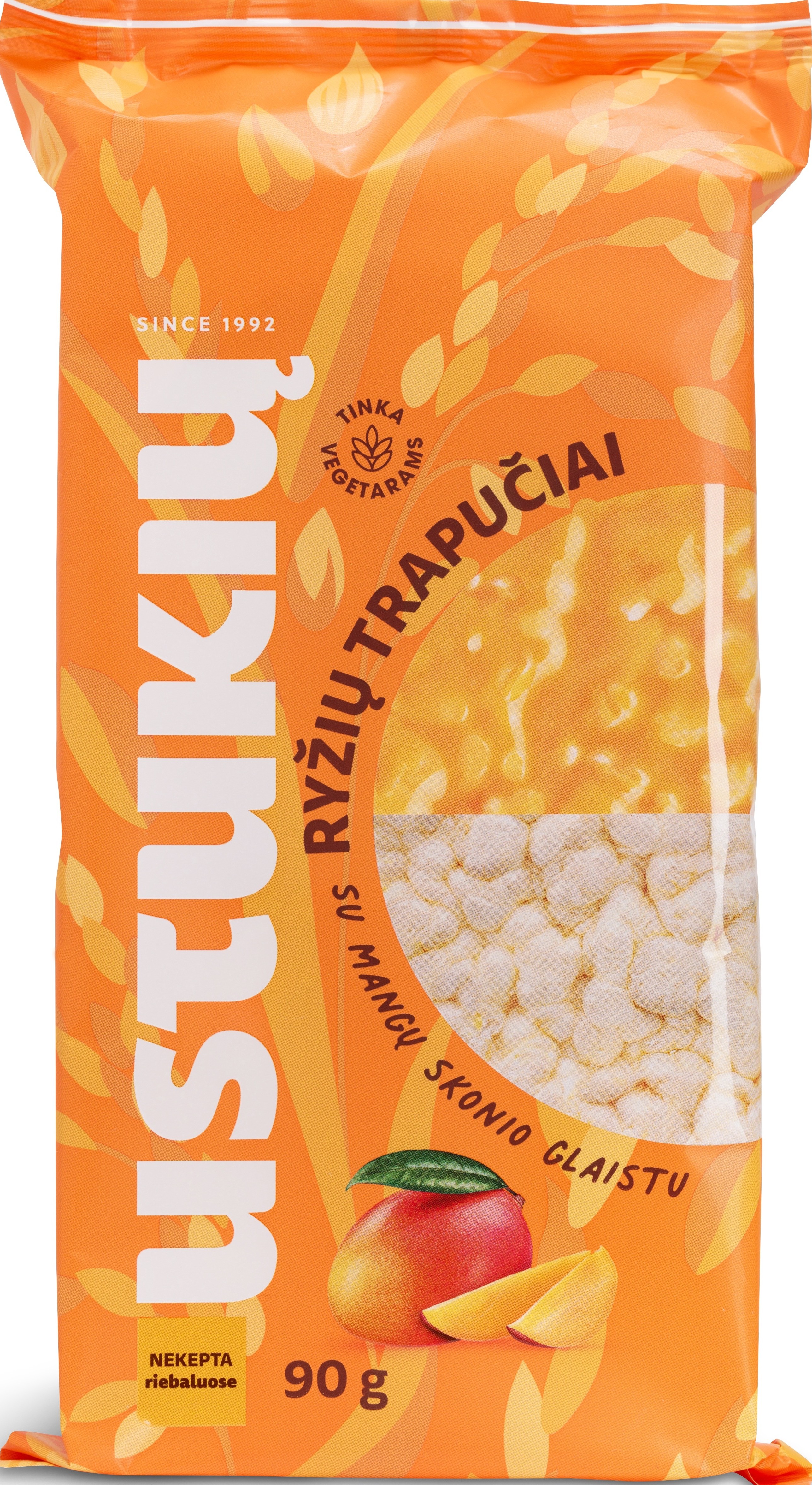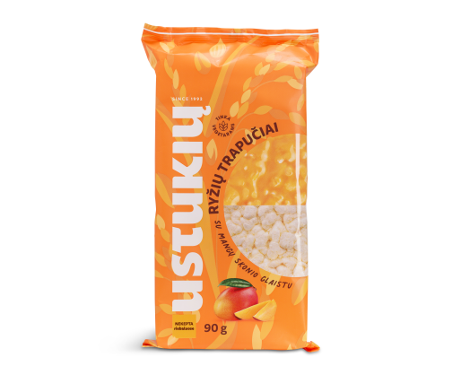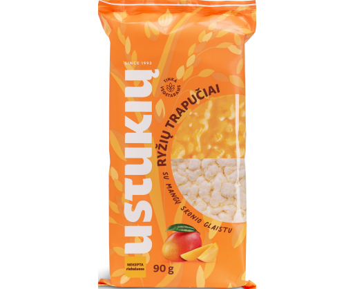 - Ryžių trapučiai USTUKIŲ MALŪNAS, su mangų skonio glaistu, 90 g