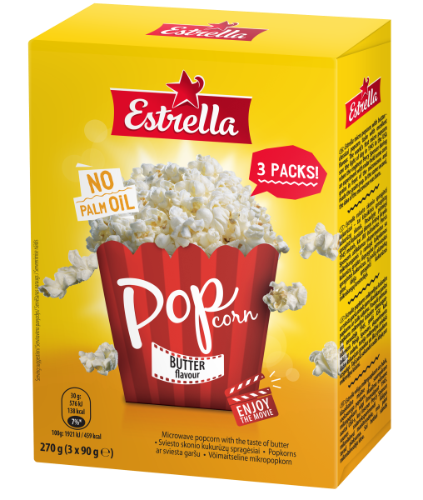 - Kukurūzų spragėsiai ESTRELLA, sviesto skonio, 3*90g