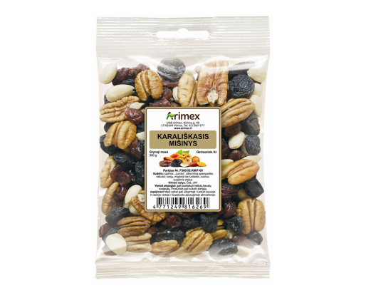 Razinos „Jumbo, riešutai: karijų riešutai, migdolai; spanguolės, cukrus, rafinuotas, nehidrintas augalinis aliejus.Sultingų razinų „Jumbo“, karijų, migdolų be luobelių ir saldžiarūgščių spanguolių mišinys puikiai tiks kepiniams, košėms, varškei, sausiems pusryčiams gardinti ar pakramsnoti išalkus.
