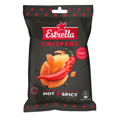 - Kepinti žemės riešutai ESTRELLA, aitriųjų paprikų skonio, su traškia luobele, 140 g