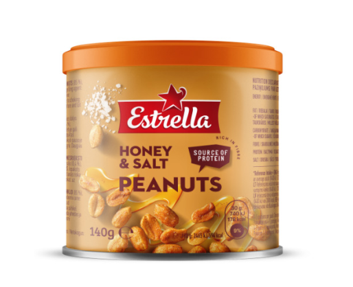 - Kepinti žemės riešutai su medumi ir druska ESTRELLA, metalinis indelis, 140 g