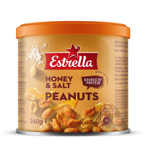 - Kepinti žemės riešutai su medumi ir druska ESTRELLA, metalinis indelis, 140 g