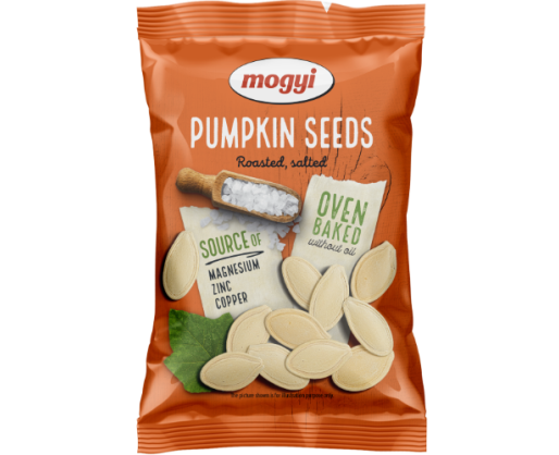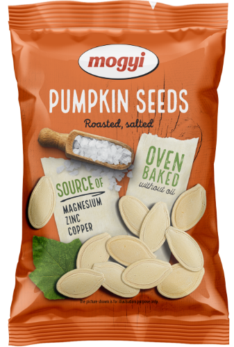 Skrudinti, sūdyti moliūgų grūdai. Sudėtis:Nelukštenti moliūgų grūdai, druska 4 %. Sudėtyje gali būti glitimo, žemės ir kitų riešutų pėdsakų. Supakuota naudojant apsaugines dujas