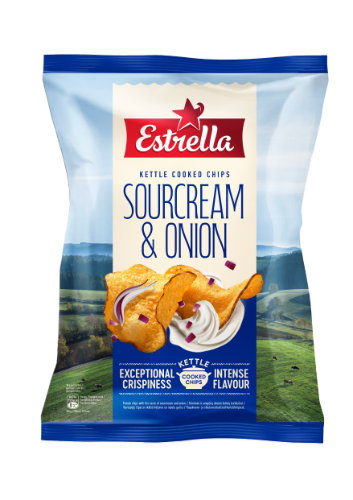 - Bulvių traškučiai ESTRELLA KETTLE grietinės ir svogūnų skonio, 120g