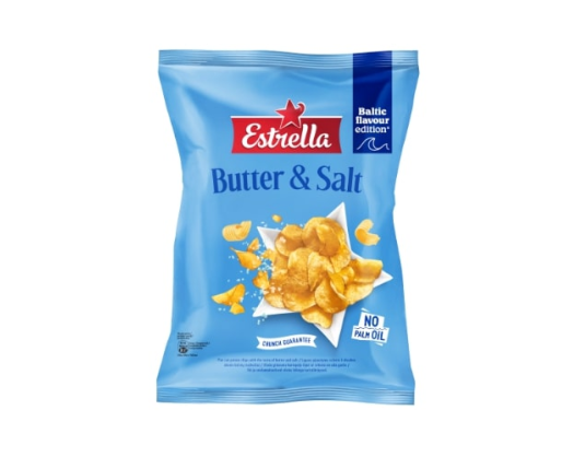 - Bulvių traškučiai ESTRELLA, lygaus pjaustymo sviesto ir druskos skonio, 170 g