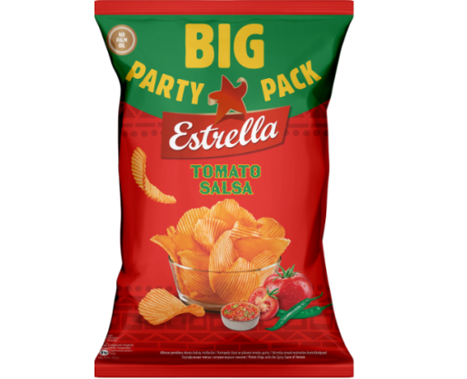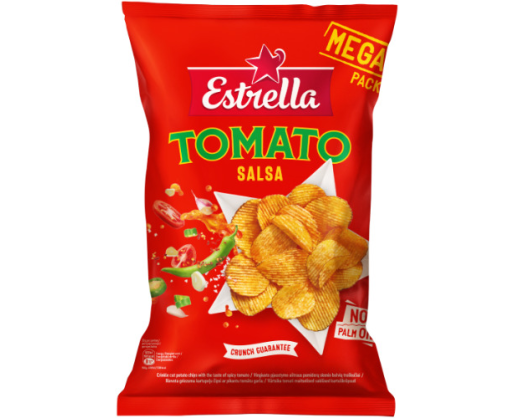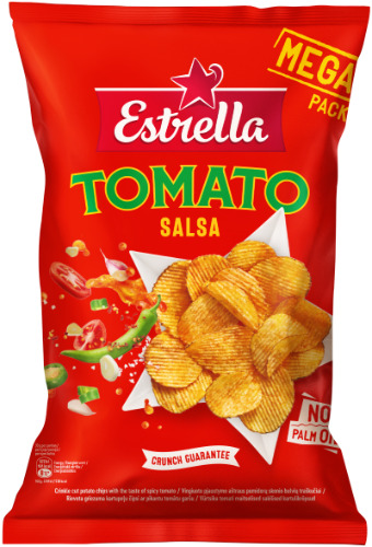 - Bulvių traškučiai ESTRELLA, vingiuoto pjaustymo, aštraus pomidorų skonio, 250 g