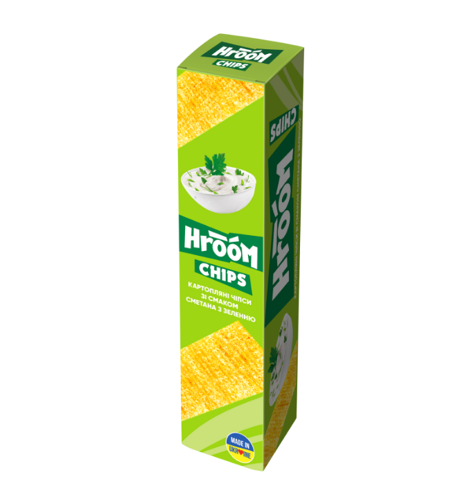 - Bulvių traškučiai HROOM, jusotelėmis, grietinės ir žolelių skonio, 50 g