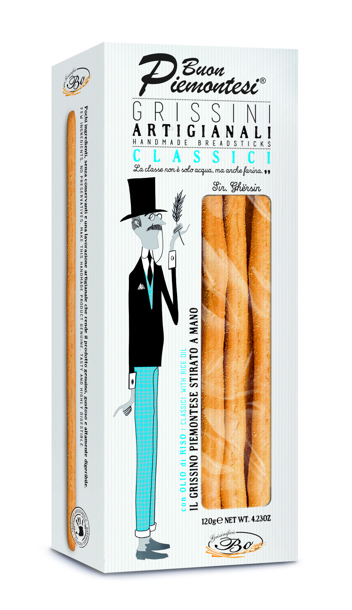- Duonos lazdelės BUON PIEMONTESI Classici, su ryžių aliejumi, 120 g