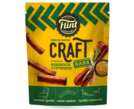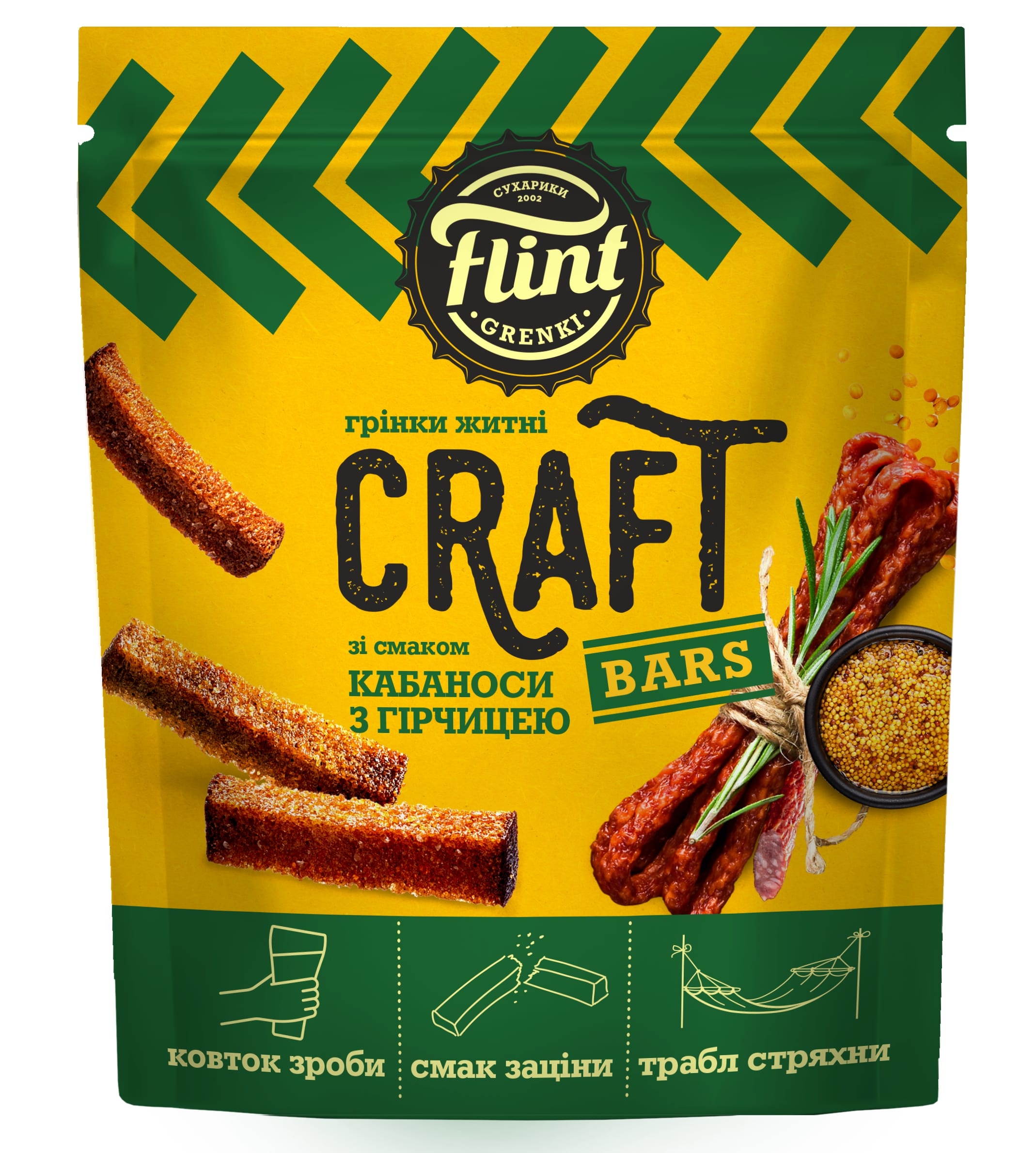 Duonos traškučiai FLINT, Craft, kabanosių ir garstyčių skonio, 80 g