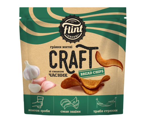 Duonos traškučiai FLINT, Craft, vingiuoti, česnakų skonio, 80 g