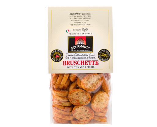 - Krekeriai Bruschette GOURMANTE, su pomidorais ir baziliku, 150 g