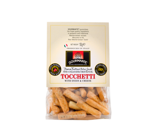 Krekeriai Tocchetti GOURMANTE, su svogūnais ir sūriu, 150 g