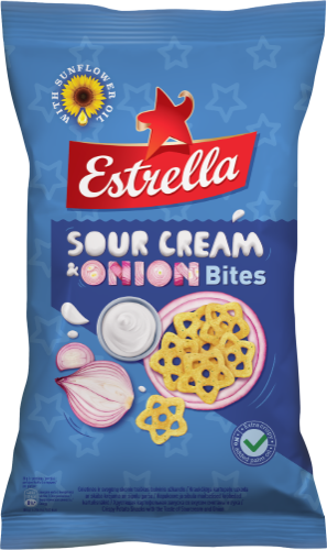 - Kukurūzų traškučiai ESTRELLA BITES grietinės ir svogūnų skonio,110 g
