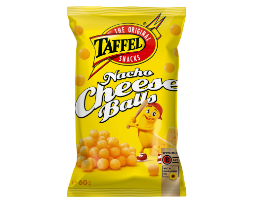- Kukurūzų traškučiai TAFFEL, Nacho Cheese Balls, 60g