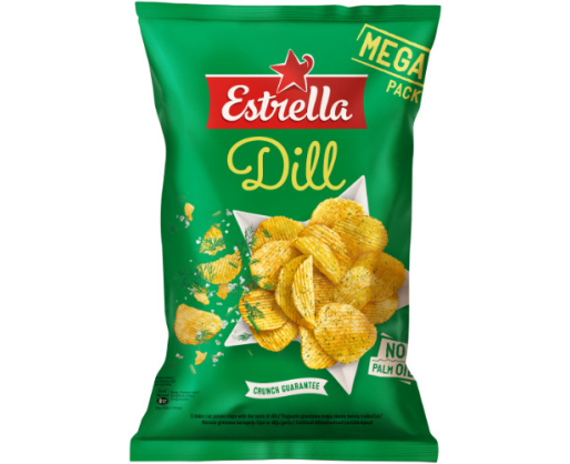 - Vingiuoto pjaustymo bulvių traškučiai ESTRELLA su krapais, 250 g