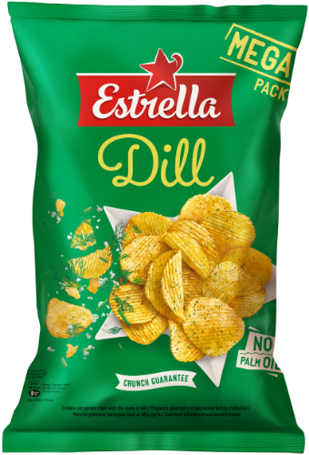 - Vingiuoto pjaustymo bulvių traškučiai ESTRELLA su krapais, 250 g