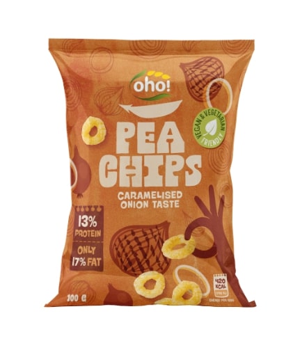 Žirnių traškučiai OHO, karamelizuotų svogūnų skonio, 100 g