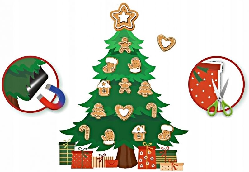 Paruoštą, iškirptą eglutę pakanka pritvirtinti prie šaldytuvo, magnetinės lentos ar kito metalinio paviršiaus, o vėliau ją laisvai dekoruoti rinkinyje esančiais meduoliais.