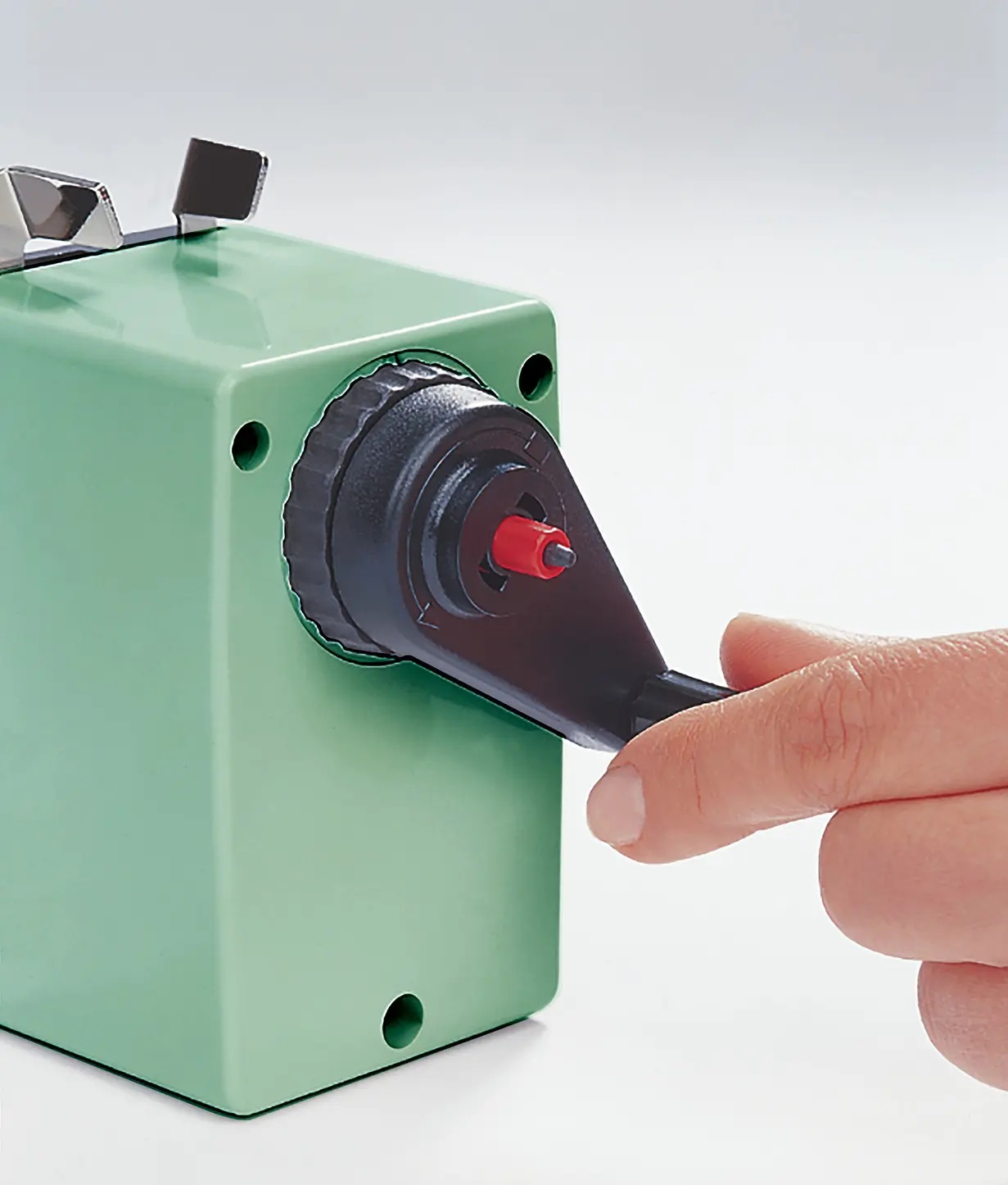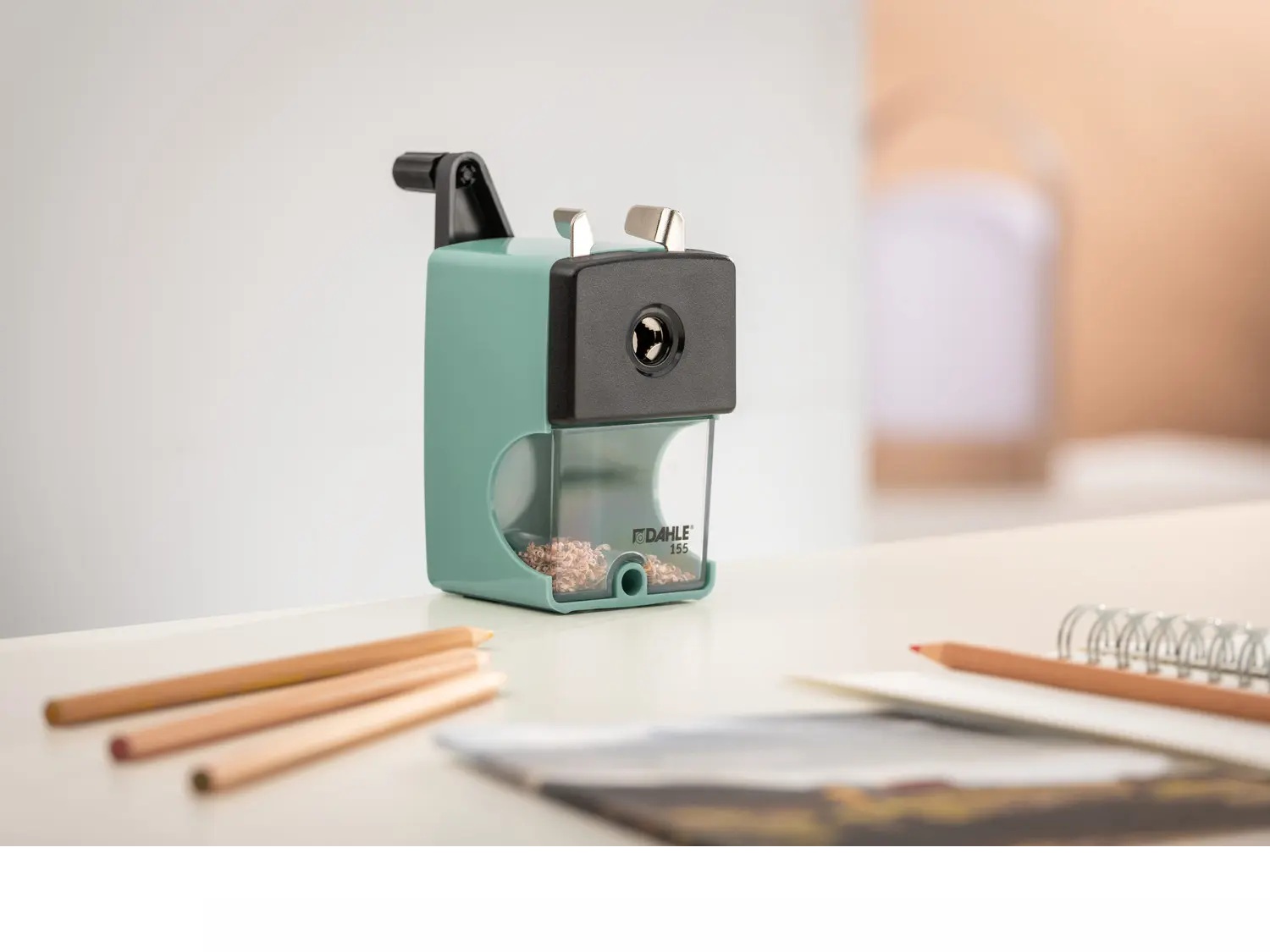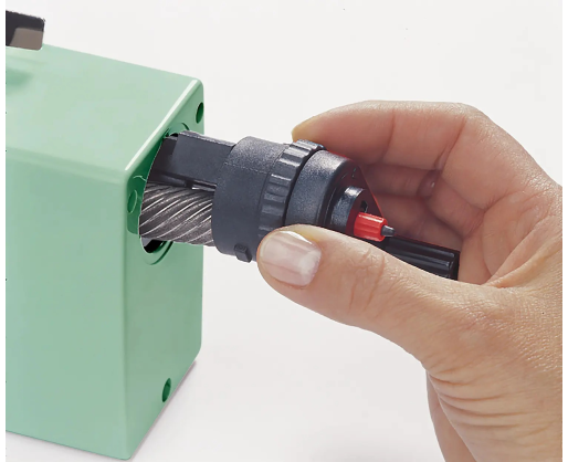 - Lengvai sukama rankenėlė leidžia be pastangų drožti pieštukus ir vaško kreideles.