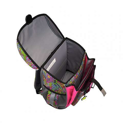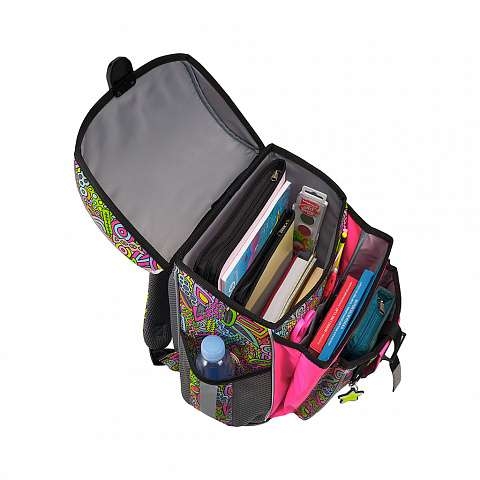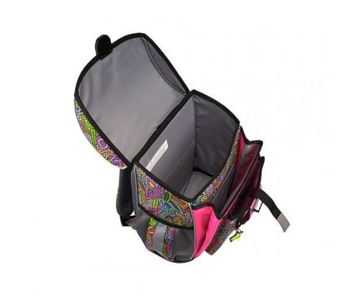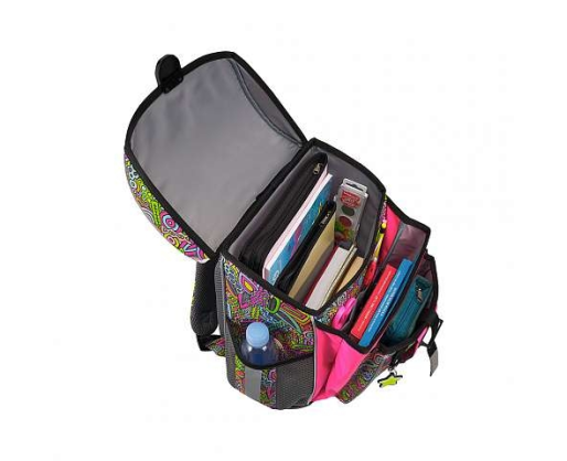 Tvirto rėmo kuprinė su ergonomiška nugarėle. Tūris: 16 litrų. Svoris: 830 gramų – viena lengviausių kategorijoje. Trys skyriai: erdvus pagrindinis su elastiniu užsegimu A4+ formato sąsiuviniams ir vadovėliams ir du papildomi raštinės reikmenims.