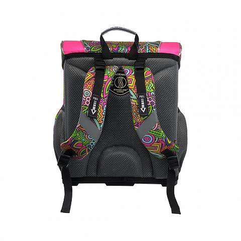 Dvi šoninės kišenės vandens buteliui ar skėčiui. Ergonomiška nugarėlės ErgoLine®System konstrukcija iš minkštų pagalvėlių paskirsto kuprinės svorį ir sumažina vaiko stuburui tenkančią apkrovą. Kvėpuojantis AirMesh audinys ir oro kanalai tarp nugarėlės pagalvėlių neleidžia susidaryti drėgmei.